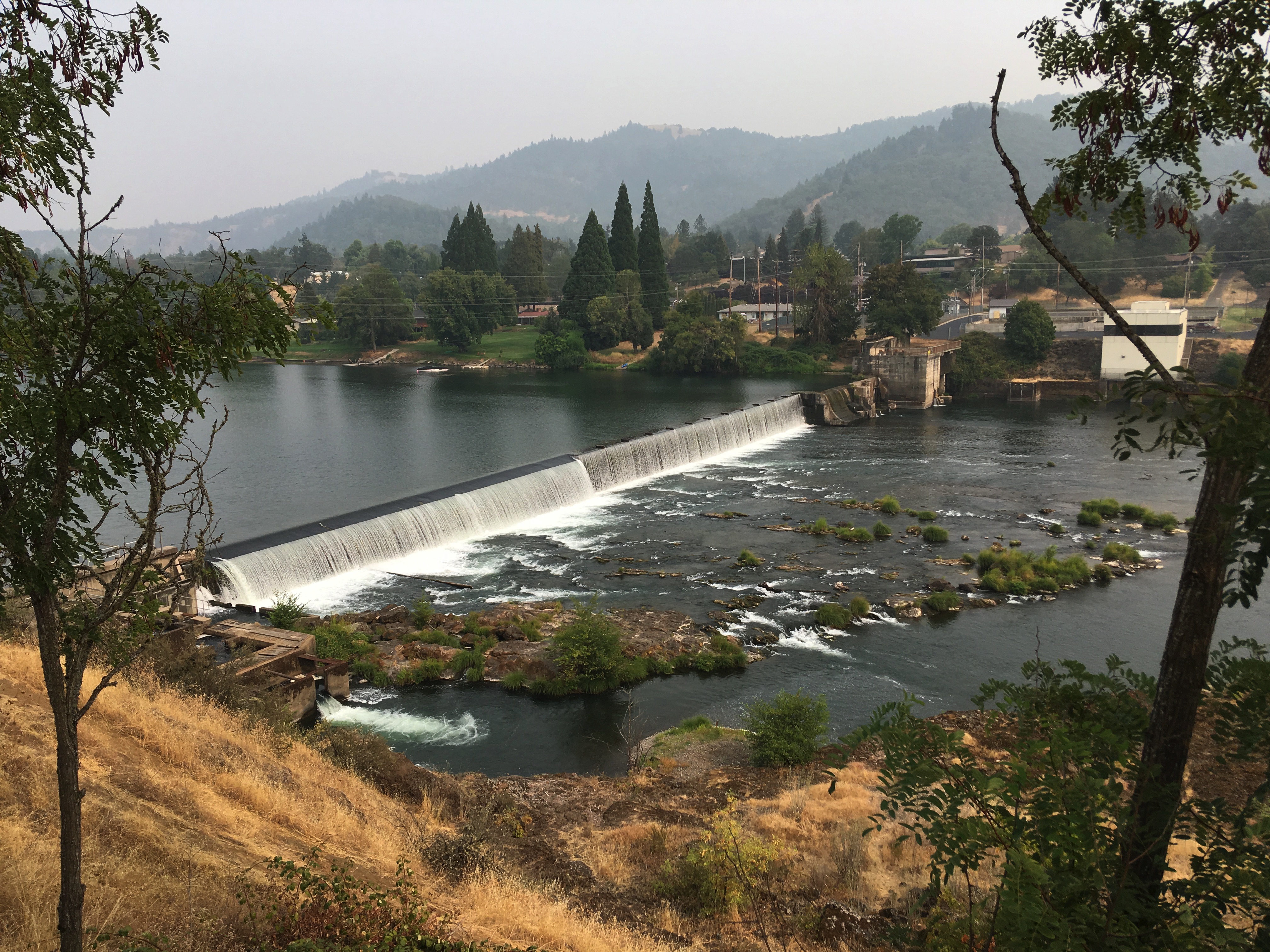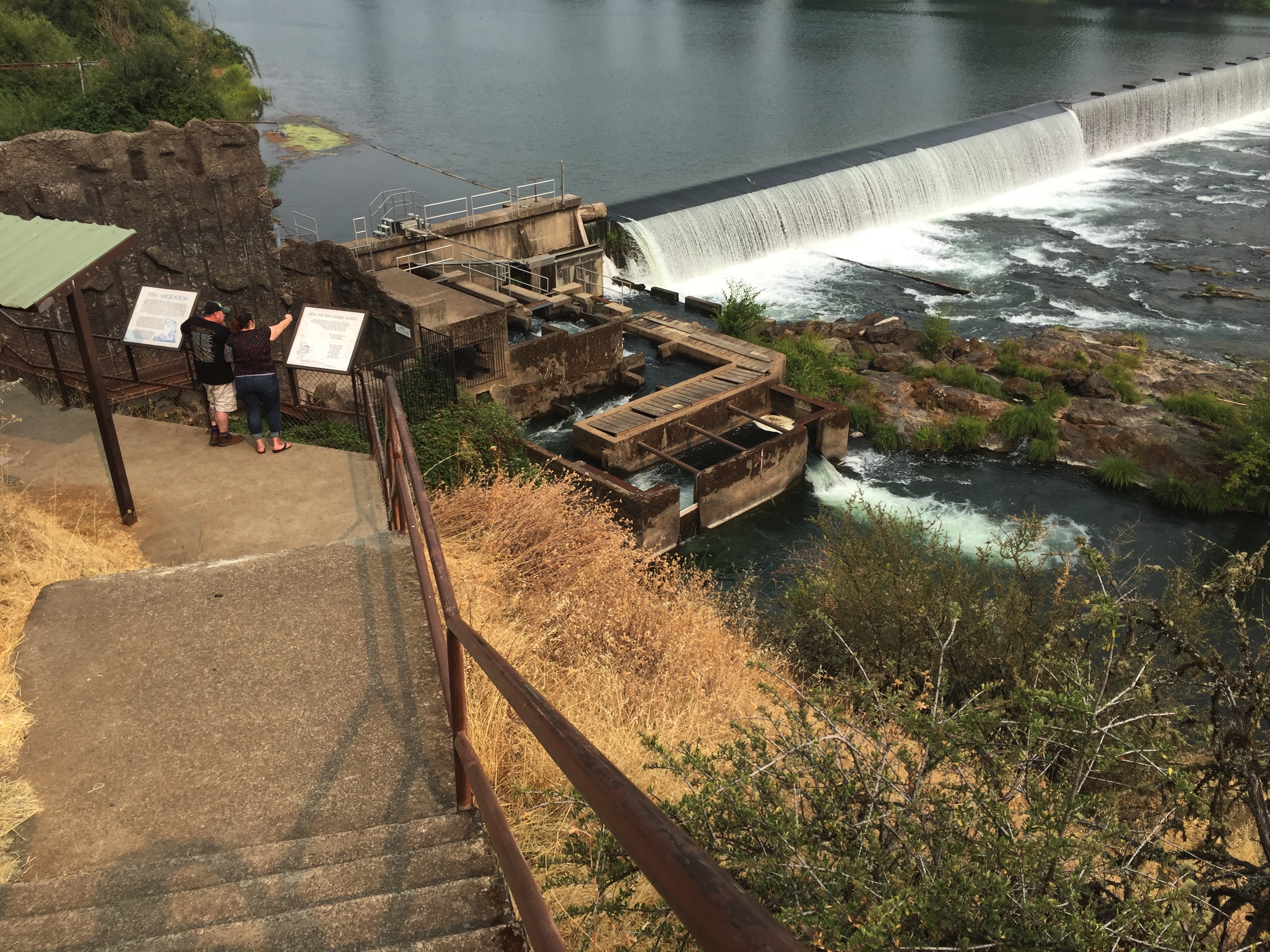 We have driven by the weir/fish ladder on the north side of Roseburg but had never stopped to actually look at it. It isn’t a huge weir, but it does span the Umqua River and so they had to have a fish ladder in order for salmon to migrate upstream to spawn.