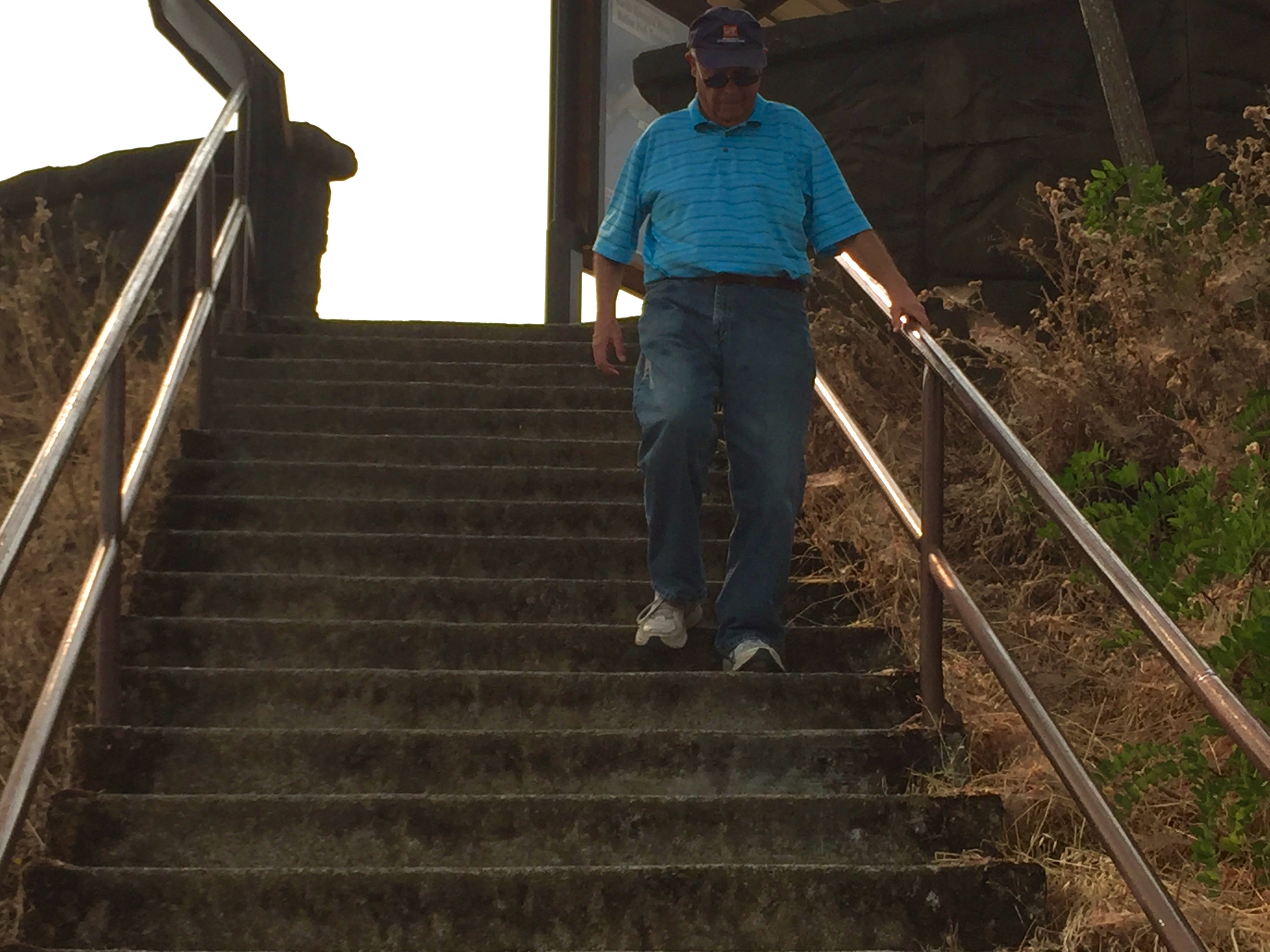 There were a LOT of steps down to the bottom, but Dave didn’t have much of a problem when there was a railing to steady him. One of the downsides of diabetes is that eventually you get neuropathies in the feet, and when you add that to the lingering after effects of the stroke, you can get some balance problems going downstairs. When we don’t have a railing, I am the substitute steadying influence!